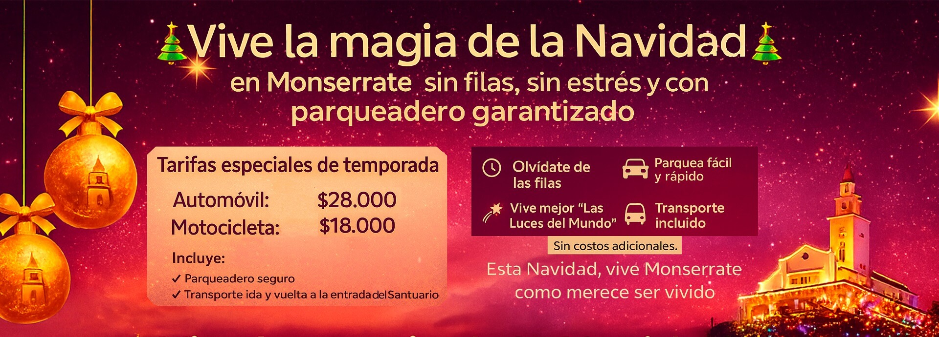 Te subes, te llevamos y listo. Desde el parqueadero hasta la entrada de Monserrate y de regreso, con comodidad y cero costo extra.